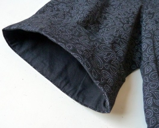 Elles sont finies par un revers de manche rapporté, lequel ne se voit pas trop avec mon imprimé :
