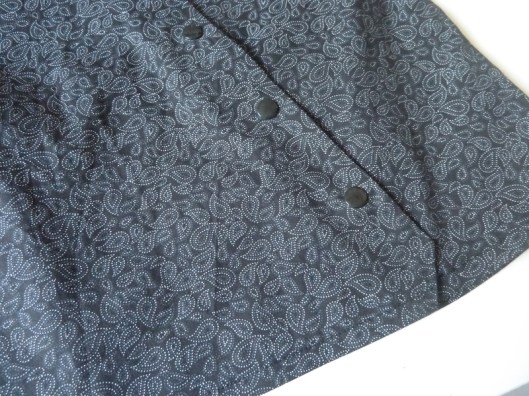 Il est fort probable que le tissu que j’ai choisi ne soit pas approprié pour cette chemise. J’ai en effet choisi une cotonnade pas assez souple que j’avais trouvé chez Dreyfus au marché Saint-Pierre à un prix vraiment attractif (4,90 €/mètre). Je suis d’ailleurs absolument fan de cet imprimé cachemire !