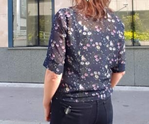 J’aurais clairement dû utiliser un tissu beaucoup plus fluide comme la viscose ou le mousseline… C’est d’ailleurs ce qu’a fait Genaelle et sa version est absolument exquise ! Le rendu n’est pas du tout le même ! Comme quoi, c’est le tissu qui fait tout !