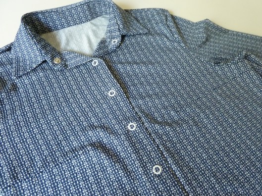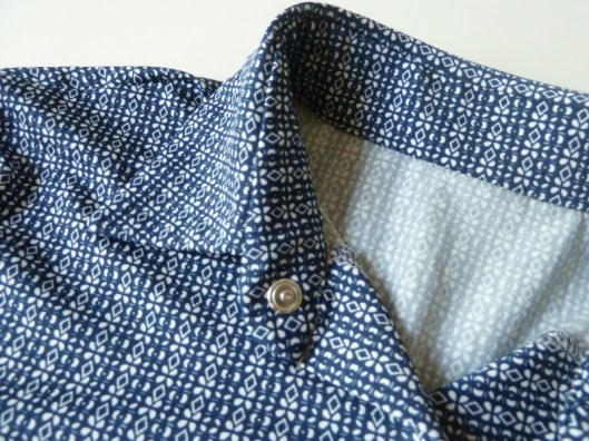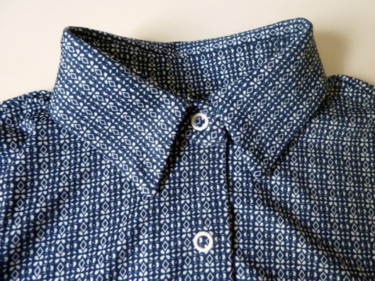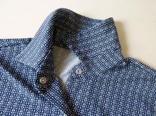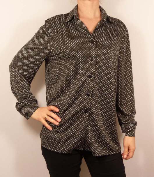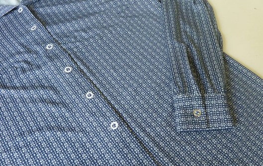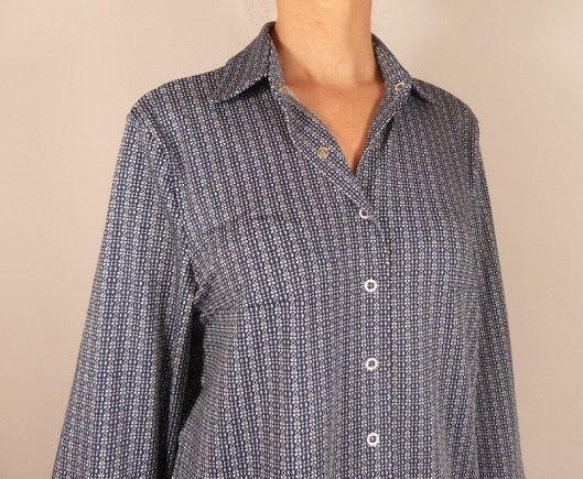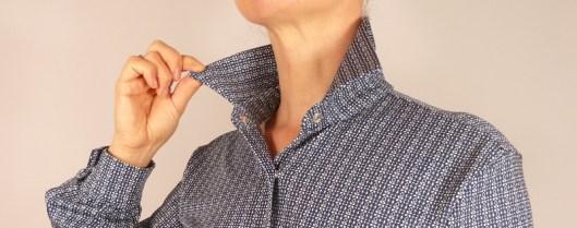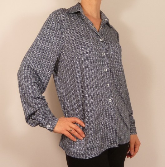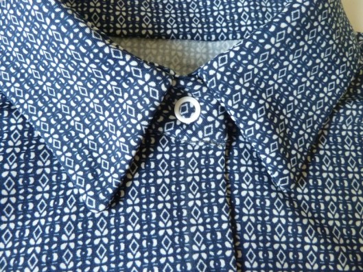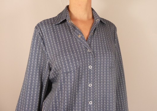 L’avantage de ce tissu c’est qu’il ne se froisse pas et qu’il sèche relativement rapidement. Seulement, comme chacun le sait, coudre du jersey ce n’est pas toujours évident surtout quand il s’agit comme ici de coudre non pas un T-Shirt mais un chemiser avec tous les détails que cela représente : pattes de boutonnage, col, poignets et fente indéchirable… tout cela demande, vous en conviendrez, tout de même un peu de minutie et de précision…