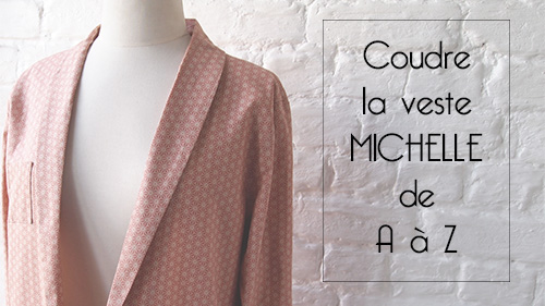 Voici la description de la veste Michelle par sa créatrice : « c’est une veste mi-saison doublée, la petite sœur du Manteau Gérard, avec un long col châle, deux grandes poches plaquées et une poche poitrine. Elle peut être boutonnée si vous le désirez ou portée ouverte. »