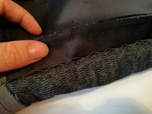 La créatrice a prévu des parementures d’ourlet pour le bas de la veste et le bas des manches. Détail qu’on ne voit pas beaucoup dans les autres patrons. J’ai suivi les instructions pour la doublure et notamment la gestion de la doublure avec le bas de parementure. C’est vraiment très bien expliqué, je ne vais donc par en parler ici.