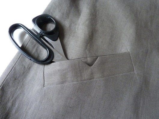 Parlons à présent du second détail : j’ai ajouté des poches passepoilées, toujours avec le même détail de cran.