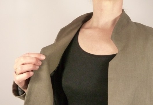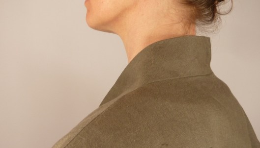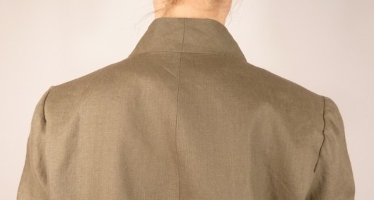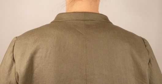 Bien que ma veste soit entoilée, la partie col/dos a tendance, au fil du temps, à légèrement se déformer. Peut-être aurais-je du prévoir sur cette partie un entoilage plus épais…