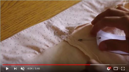 J’ai opté pour la pose de 4 élastiques (donc 4 coulisses) pour que les fronces soient les plus fines et les mieux réparties possibles au dos. J’ai choisi un élastique tissé, plat et souple d’1 cm qui ne se déforment pas quand on l’étire.