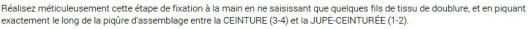 3/ J’aurais apprécié des explications sur le point invisible qu’il convient de faire à la main sur toute la ceinture devant car ce n’est clairement pas mon point fort et ce n’est à mon avis pas non plus celui des débutants. Dans les explications, il est dit de procéder à cette fixation à l’aide de petits points glissés et discrets à la main sur le devant et ceci :