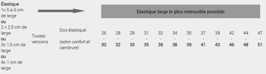 Pour cette ceinture élastiquée smockée, plusieurs dimensions d’élastiques sont proposées : de 1 à 4 élastiques.
