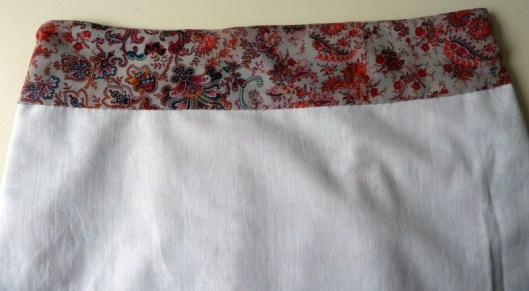 2/ une fois l’élastique posé, il est alors plus difficile de faire une piqûre bien droite et précise pour fixer la ceinture à la jupe.