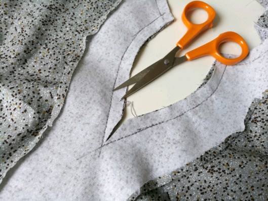 Alors c’est certain, ma cotonnade n’est pas des plus souples ni des plus fines mais j’aime tout de même le rendu ! Il s’agit ici d’un coton acheté chez Diffus’laine Tissus à Saint-Nazaire (11€85 = 1m50).