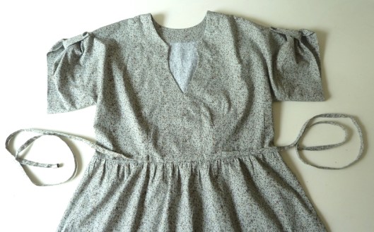 Pour cintrer cette tunique, il est prévu dans le patron, des liens que l’on vient nouer au dos.
