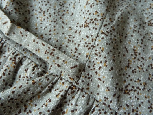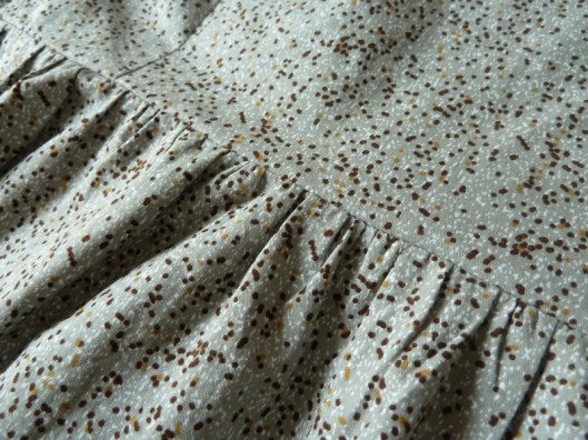 La partie haute de la jupe est froncée, ce qui peut donner un effet grossissant. Je trouve cependant ici que ça passe vraiment très bien : les fronces ne sont en effet pas trop importantes.