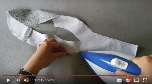 Le livret conseille d’utiliser la technique de la piqûre-guide temporaire pour former l’ourlet étroit tout le long de la parementure. Si cela vous intéresse, je vous invite à regarder mon dernier podcast (début à 1h14) :