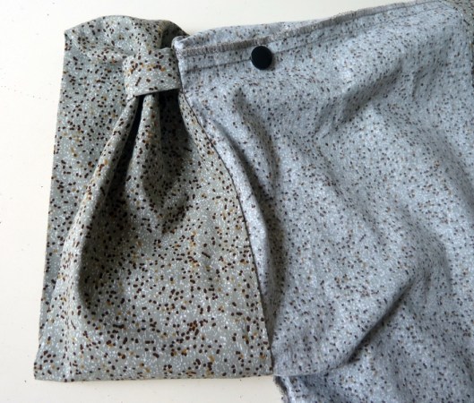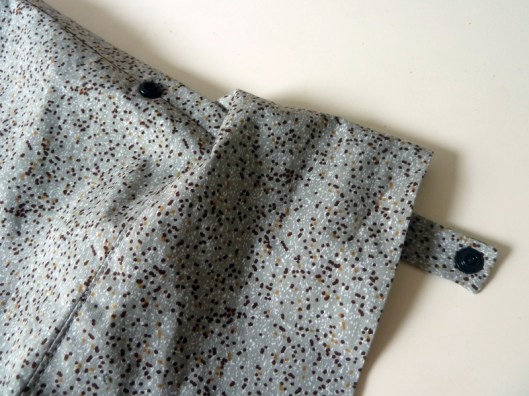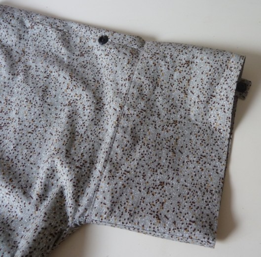 La patte de boutonnage permet de retrousser les manches. Plutôt qu’une boutonnière, j’ai préféré poser une pression Prym :