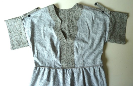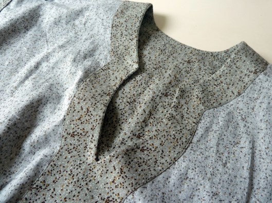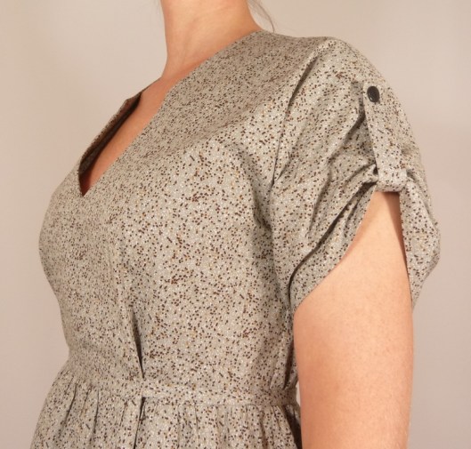 Le niveau indiqué est intermédiaire, ce que je confirme. Il n’y a pas de réelles difficultés techniques (pinces, fronces, parementures, ourlet arrondi, patte de boutonnage) mais ce patron demande tout de même un peu de temps et de minutie car les finitions proposées sont, je trouve, assez soignées.