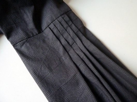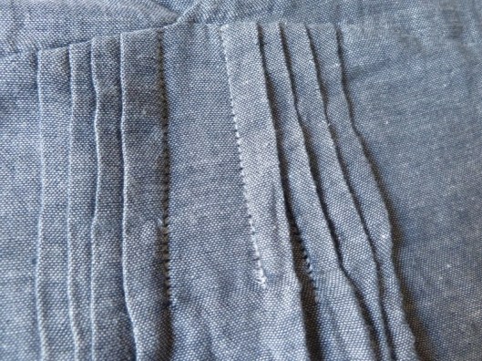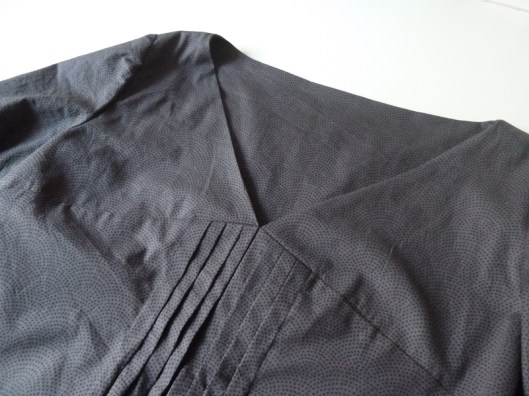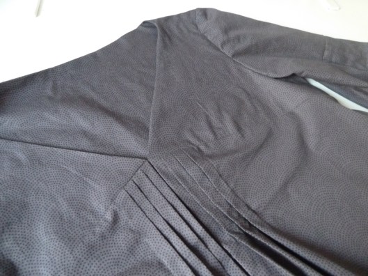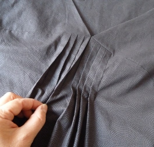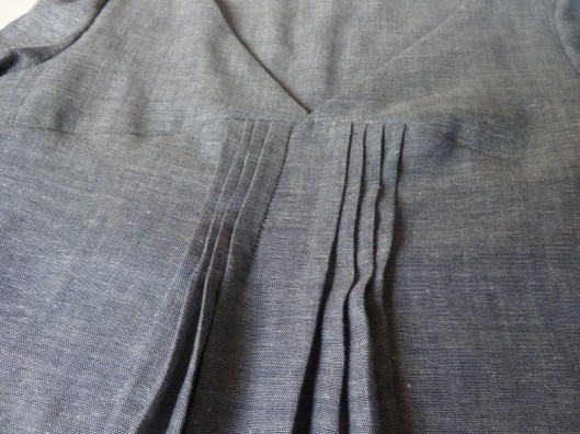 Pour ma première version j’avais orienté les plis vers l’extérieur mais j’ai tenu ici à respecter les indications de Burda : les plis sont donc couchées vers le milieu devant du corsage :