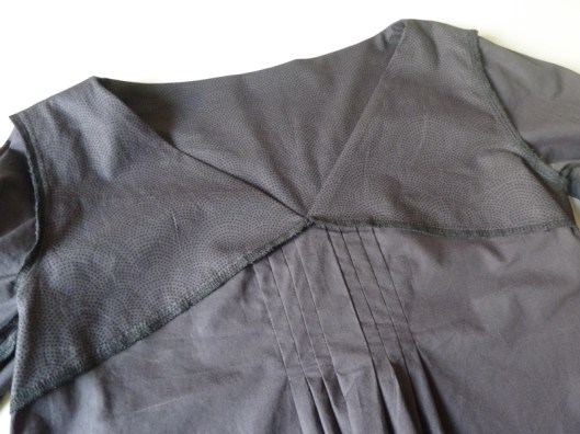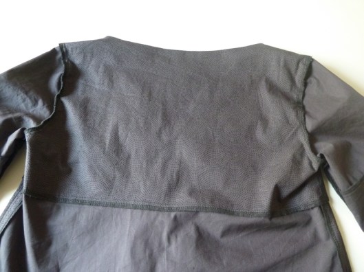 J’ai également doublé le dos (Burda propose une parementure, ce que je n’ai donc pas fait). Sachez par ailleurs que les pièces du dos sont en deux parties. Ce que je n’ai pas fait non plus ! J’ai tout mis au pli !