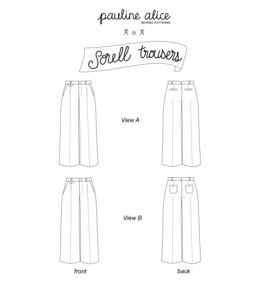 J’avais acheté ce patron au format pochette mais je me rends compte qu’il n’apparait sur le site Pauline Alice qu’au format PDF. Serait-il en rupture de stock ? Une fois le patron en main, j’ai décalqué toutes les pièces puis j’ai vendu le patron en oubliant toutefois de faire une copie du cahier technique. Heureusement, sur le site de Pauline Alice, il y a un Tutoriel du pantalon Sorell richement illustré.