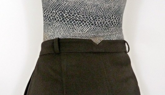Le montage de la braguette est bien expliqué : j’ai particulièrement aimé la méthode utilisée ! J’aurais juste souhaité avoir un petit éclaircissement sur la pose du sous-pont car je ne suis pas sûre de l’avoir fixé exactement au bon endroit. Je ne m’en suis rendu compte qu’au moment d’assembler la ceinture au pantalon : ma ceinture était bien trop longue côté braguette… Alors, aurais-je mal décalqué ma pièce ou bien aurais-je mal positionné le sous-pont ? Mystère… Évidemment comme j’ai vendu le patron, je n’ai pas moyen de vérifier mes pièces décalquées… Tant pis ! Ma ceinture a donc été réduite en longueur pour que celle-ci vienne correctement épousé le haut de mon pantalon.