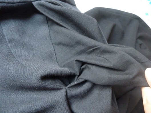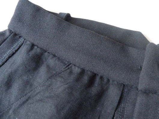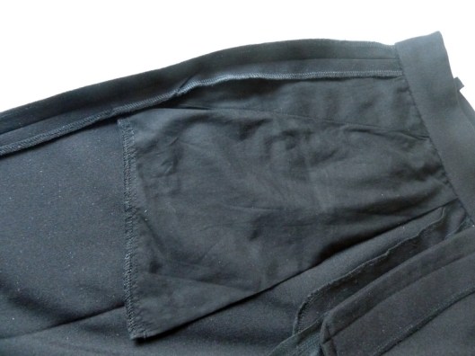 J’ai tout de même dû réduire les valeurs de couture de l’enfourchure dos pour que mon fessier puisse être à peu près à l’aise. Heureusement que les valeurs de couture étaient de 1,5 cm (les marges de couture sont incluses dans le patron) !