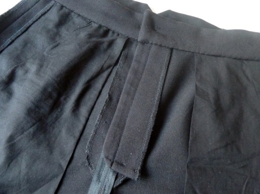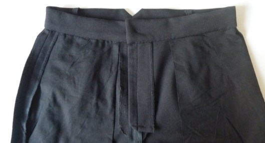 Je n’ai pas souhaité surpiqué la ceinture (goût personnel) : j’ai donc rabattu la ceinture sur l’intérieur du pantalon et je l’ai cousue à la main avec un point glissé invisible.