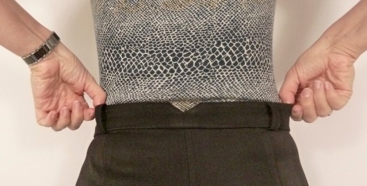 J’ai tout de même dû réduire les valeurs de couture de l’enfourchure dos pour que mon fessier puisse être à peu près à l’aise. Heureusement que les valeurs de couture étaient de 1,5 cm (les marges de couture sont incluses dans le patron) !