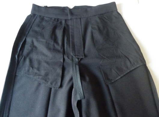 J’ai cousu la braguette la veille de partir en vacances, chose qu’il vaut mieux éviter, surtout quand il s’agit d’un point technique comme celui-ci… Figurez-vous que, comme je n’avais pas de zip aux bonnes dimensions, j’ai pris un zip plus long de mon stock en oubliant de le couper et de faire un point d’arrêt comme conseillé. Résultat, le zip est toujours là et donc très visible… Il va falloir que j’y remédie et que je finisse correctement l’embout de mon zip avec un biais. Petite précision au passage : à mon avis la pièce du sous-pont est trop courte : elle n’est pas assez longue pour recouvrir/cacher correctement le zip…