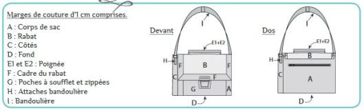 1 poche à soufflet devant : là aussi c’est tout simple à coudre, il faut juste se laisser guider par les explications.