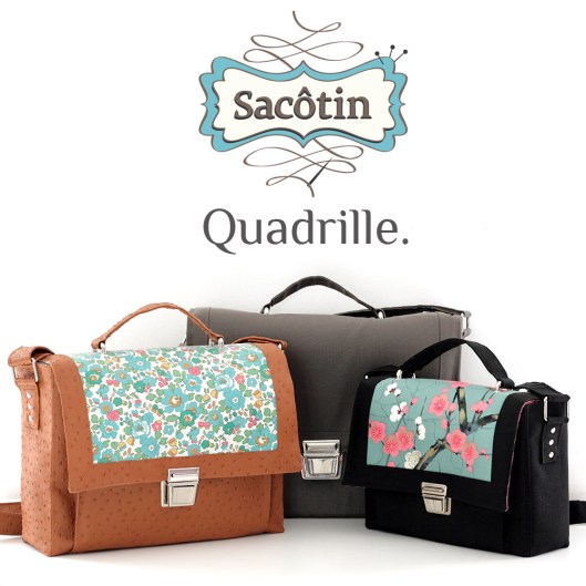 Voici la description de ce sac par la créatrice : Quadrille est un élégant sac bandoulière d’un intemporel style cartable. Le patron Quadrille inclut 3 tailles : Small et Medium pour un sac citadin féminin, Large pour une grande besace unisexe. Quadrille se ferme par une attache-cartable, sa bandoulière est ajustable et sa poignée, fixée par des pontets, permet de le saisir facilement. Le sac comprend 4 poches : 1 à soufflet devant, 1 zippée au dos, 1 à soufflet compartimentée intérieure et 1 zippée intérieure. En cliquant sur l’image, vous pourrez lire l’article de présentation très complet :