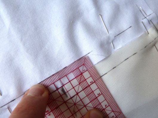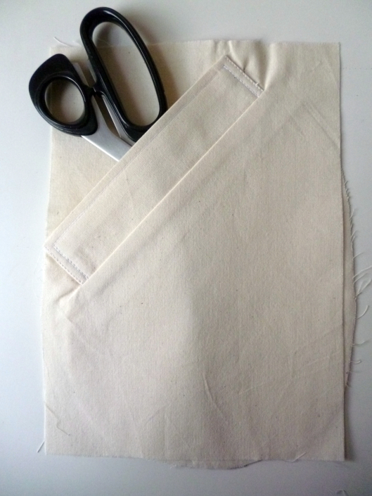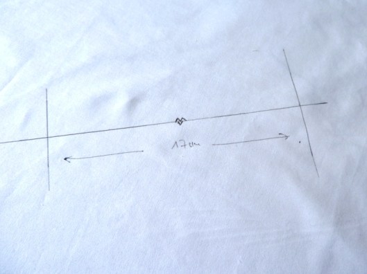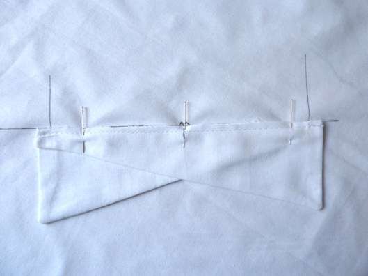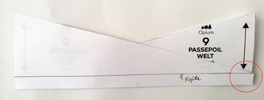 Les passepoils dépassent de chaque côté de 1 cm. Vérifiez bien que la pointe de votre passepoil est bien positionnée (ça n’apparait pas si dessous, mais tracez, mesurez…).