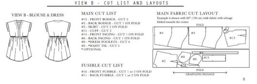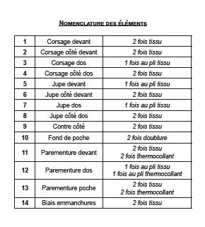Je regrette un petit point chez Deer & Doe, c’est qu’ils ne prévoient pas dans leur cahier technique un récapitulatif / une nomenclature des différentes pièces qui composent le patron : nombre de pièces à découper dans le tissu, dans la doublure et dans l’entoilage. On n’est donc obligé de se reporter aux plans de coupe et aux pièces elles-mêmes pour savoir combien de fois il faut couper…