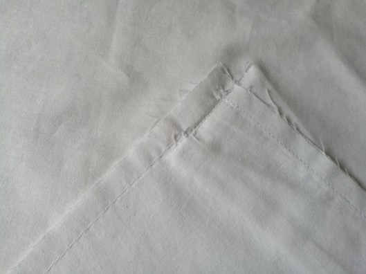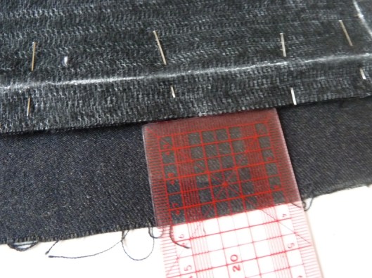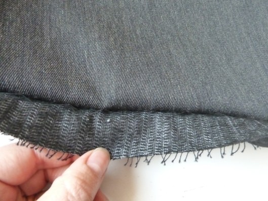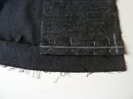 Vient ensuite l’étape doublure mais avant cela, j’ai tenu à tout glacer : ourlets (manche et bas du manteau) :