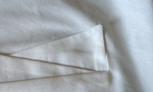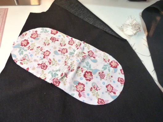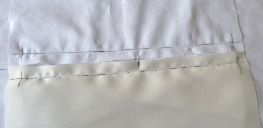 Ci-dessous, on voit qu’il faut rentrer les valeurs de couture du bas de la parementure et fermer cette ouverture avec un point à la main.