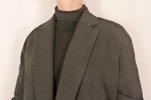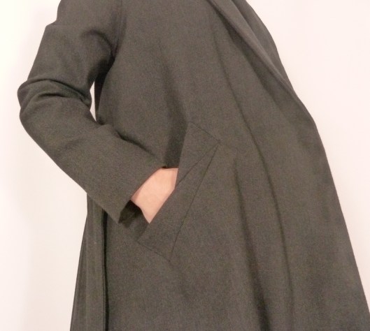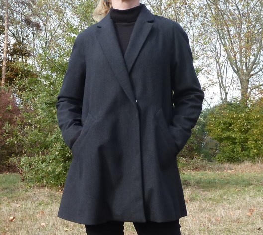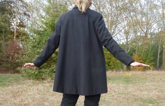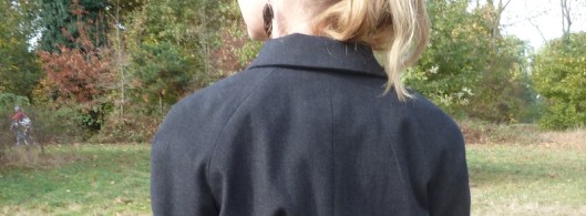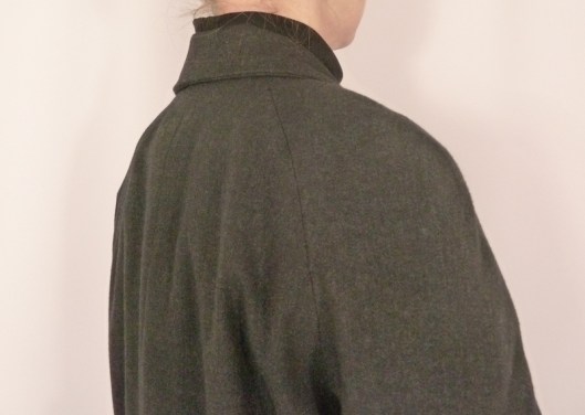 Comme vous avez pu le remarquer, le manteau est prévu avec des manches raglans. D’une manière générale, je préfère les manches montées car les manches raglans me donnent souvent l’impression d’avoir des épaules tombantes et de ne pas remplir complètement les épaules du manteau. Pour remédier à ça, j’ai voulu mettre des épaulettes mais ça faisait vraiment trop baraqué, je ne les ai donc pas mises et ma foi ça passe.