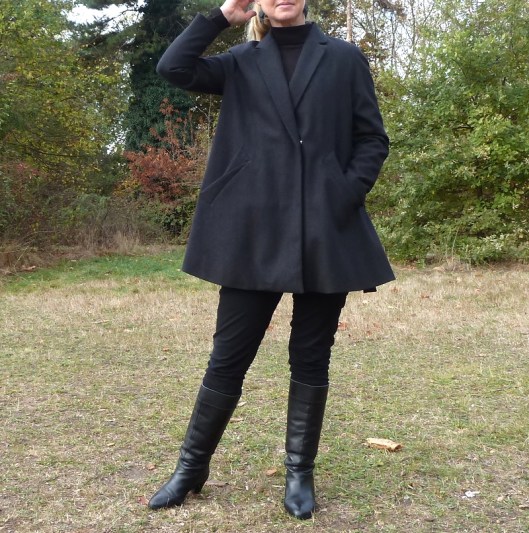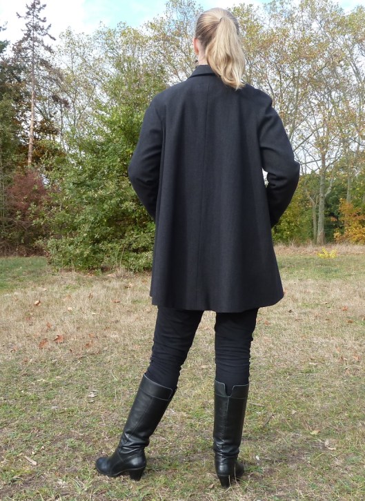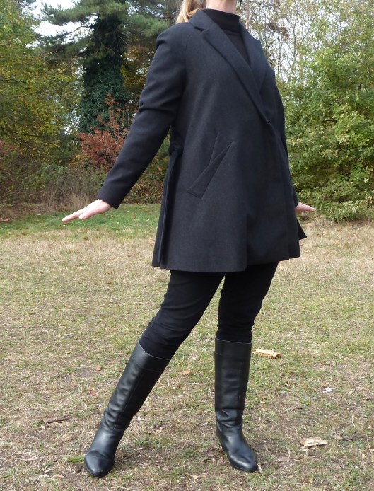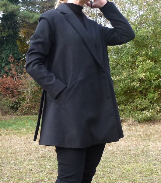 Je vais vous montrer le manteau porté (face-profil-dos) selon 3 versions. Je vous laisse ainsi faire votre propre avis !