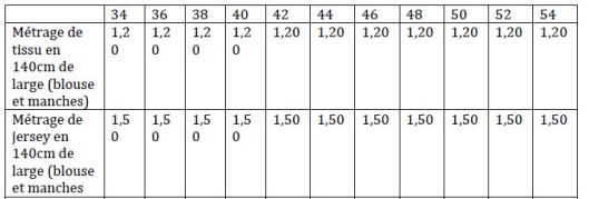 Au passage, je vous signale qu’il y a une erreur dans le livret explicatif : il est dit de prévoir 1m20 de tissu pour la version blouse et 1m50 de jersey pour la version sweat mais c’est en fait l’inverse ! Autre chose : que vous fassiez une taille 34 ou une taille 54 c’est le même métrage, est-ce normal ?