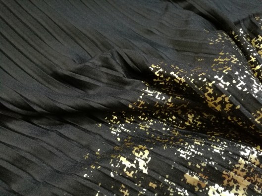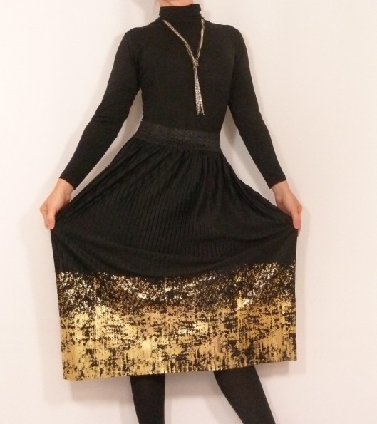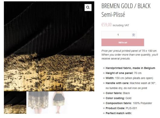 Dans le podcast de Lise Tailor, je dois bien vous avouer que j’étais en totale admiration avec les différents tissus présentés et la jupe élastiquée qu’elle avait cousue. Mais en même temps, je me disais que c’était totalement inaccessible pour moi au regard du prix… Alors c’est sûr… il ne s’agit pas d’un simple coupon de tissu ! C’est un tissu semi-plissé doré à la main. Idem pour l’élastique de taille. Le prix se justifie donc : 59 € le panneau de 70 X 150 cm. Clairement c’est hors budget pour moi, je suis donc vraiment ravie de l’avoir gagné.
