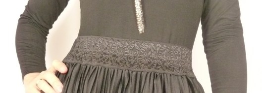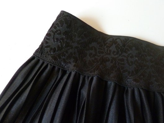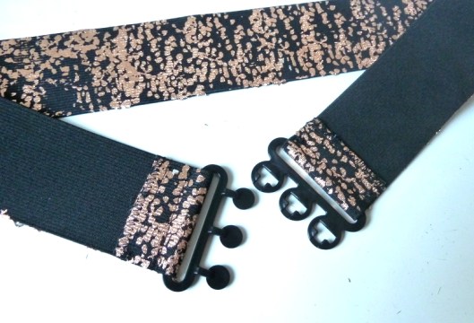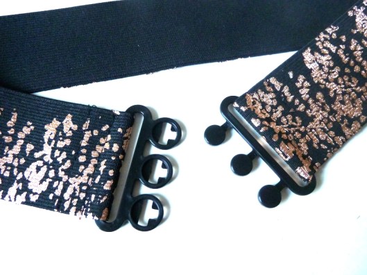 J’ai donc pris un élastique noir brodé ton sur ton qui était en fait à l’origine une ceinture élastiquée trouvée en brocante (vive la récup’!) :