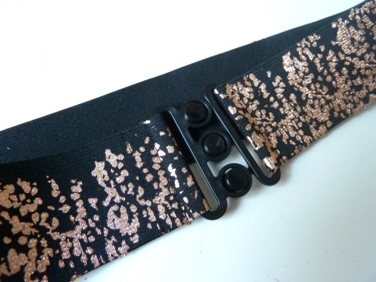 Moi qui ne porte quasiment que du noir, cette ceinture délicatement dorée/rosée est donc absolument parfaite, je l’adore !
