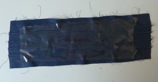 Côté tissu, c’est donc une sorte de coton / jean léger de piètre qualité acheté 3€ les 2 mètres chez Stop tissus. Parfait donc pour une toile. ça l’est un peu moins à coudre car ce tissu avait tendance à déteindre sur mes mains malgré le lavage effectué en amont.