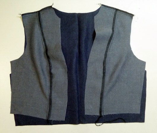 Voici ce que ça donne sur l’intérieur une fois le tout piqué (devant gauche et devant droit) :