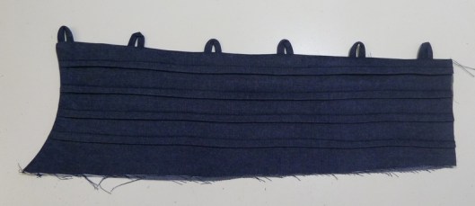 Une fois le bas de la parementure cousu, on retourne sur l’endroit, on presse au fer tout l’ourlet du bas puis on pique sur toute la longueur. Pour info, j’ai préféré faire un ourlet d’1 cm (Burda préconise 1,5 cm) :