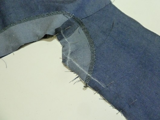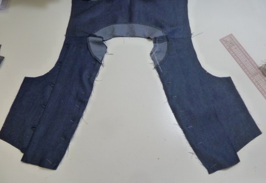 J’ai d’abord cousu le dos (pièce 24) et le devant (pièces 22 et 23) par les coutures d’épaules :