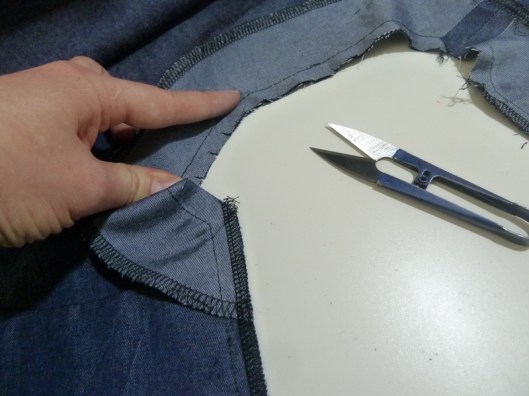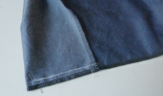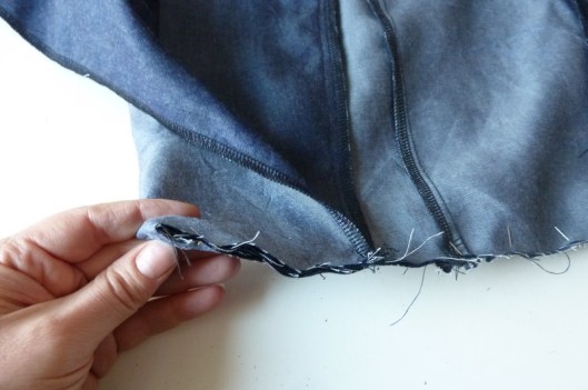 Pour la gestion du bas de la parementure et de l’ourlet, je n’ai pas suivi les explications de Burda, j’ai préféré faire ceci :