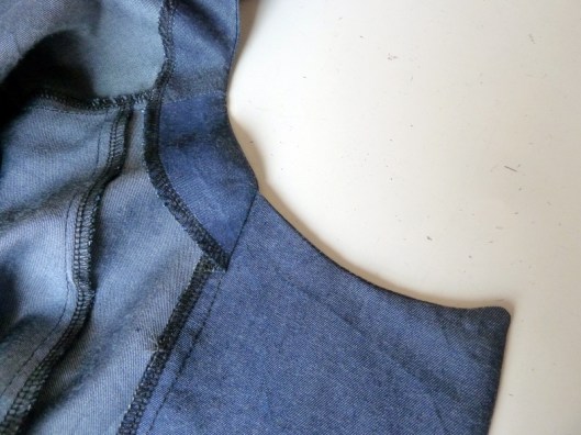 Je n’ai pas bien compris les explications de Burda pour l’assemblage du corsage devant avec les parementures, j’ai donc fait à ma sauce et le résultat est tout à fait satisfaisant. De toute façon, je ne voyais pas comment faire autrement…