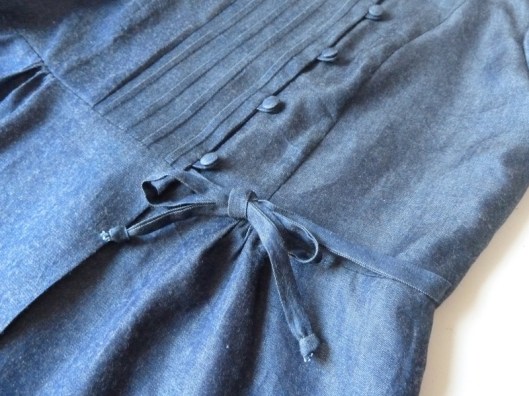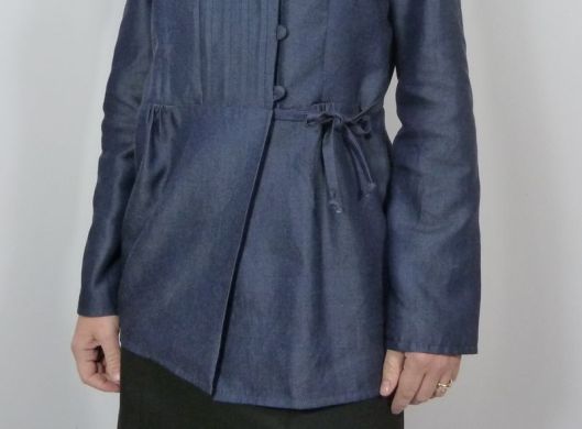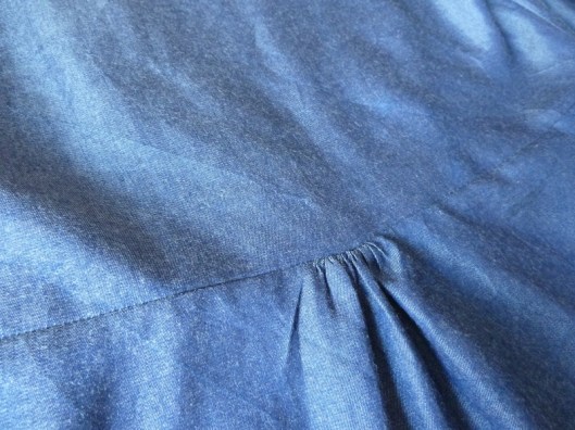 En ce qui concerne la partie basque, il y a des petites fronces au milieu dos et au devant. Je trouve ça superflu, elles n’apportent pas grand chose. Si je refais cette blouse, je les supprimerais, c’est certain…