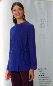Le patron est proposé en tailles courtes : 17 à 21. J’ai cousu intégralement ce chemisier en taille 18 soit la taille 36 et je n’ai procédé à aucun ajustement. Vous le voyez donc tel quel avec mon 1m68 alors que la stature est de 1m60. Je l’ai cousu ici dans un tissu pas cher, c’est donc une sorte de toile (très portable on est d’accord) mais c’est un chemisier qui nécessiterait quelques ajustements si je voulais en effet le refaire.