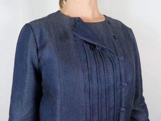 En effet, elle est strict! Par contre, je n’ai aucune hésitation sur le fait de la porter complètement fermée. Ouverte, cela casse la continuité des plis et ce côté symétrique qui est très présent. Je ne suis pas complètement convaincue sans trop réussir à cerner ce qui ne me plait pas vraiment….