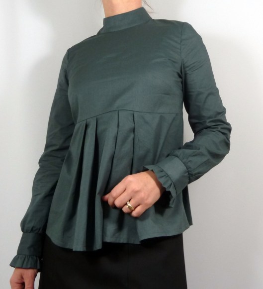 Bonjour, Encore un bel article, et un choix de patron intéressant. Cela rendrait vraiment bien en jersey, j’ai hâte de voir ta prochaine version ! J’aime particulièrement les plis devant et dos, ainsi que les jolis poignets volantés ! Par contre je la trouve très couvrante et j’imagine plutôt une version avec un décolleté…