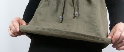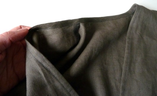 Pour les ourlets du bas de la tunique et des emmanchures, j’ai fait un ourlet double :