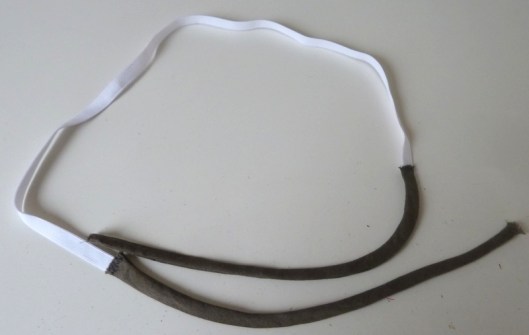 Pour le lien à nouer, j’ai fait un mix élastique/tissu.